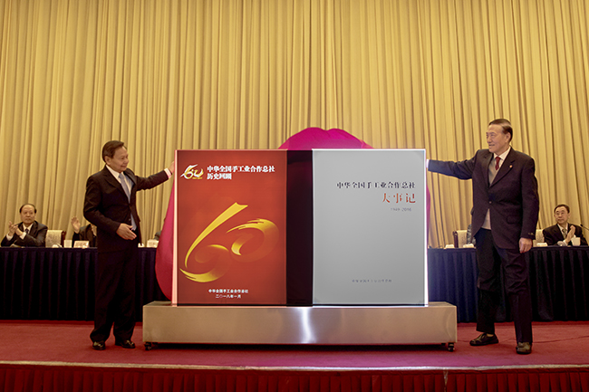 會(huì)議還舉行了中華全國(guó)手工業(yè)合作總社60周年紀(jì)念畫(huà)冊(cè)、大事記發(fā)行儀式。中華全國(guó)手工業(yè)合作總社主任張崇和、會(huì)社老領(lǐng)導(dǎo)陳士能共同為畫(huà)冊(cè)、紀(jì)念冊(cè)揭牌。